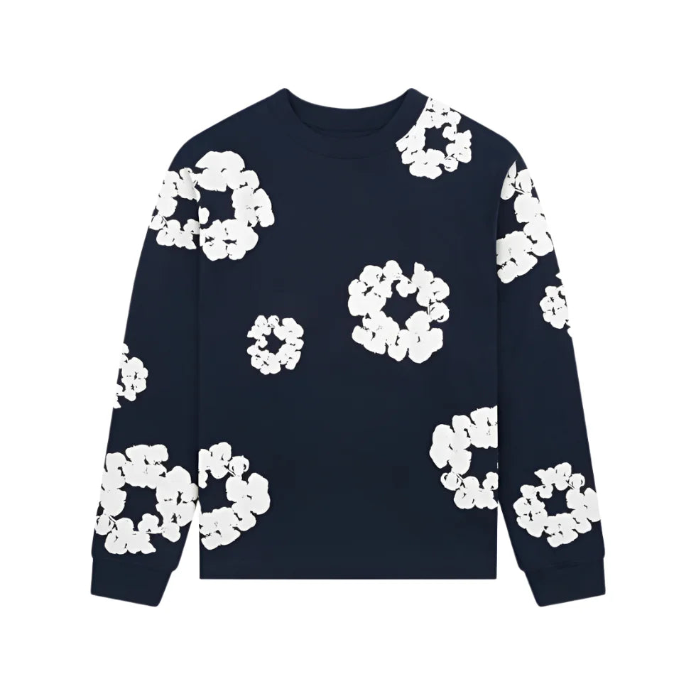 Denim Tears The Cotton Wreath Long-Sleeve Navy T Shirt