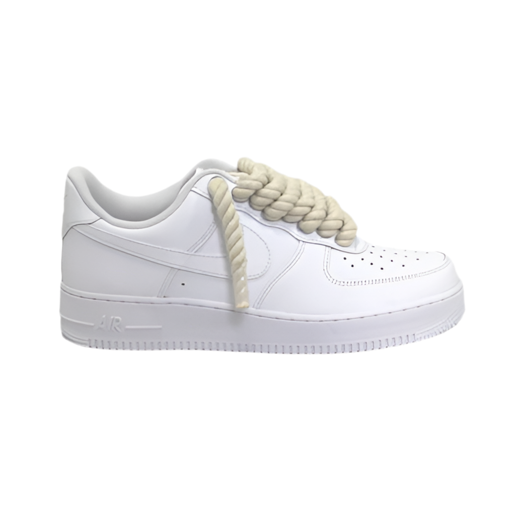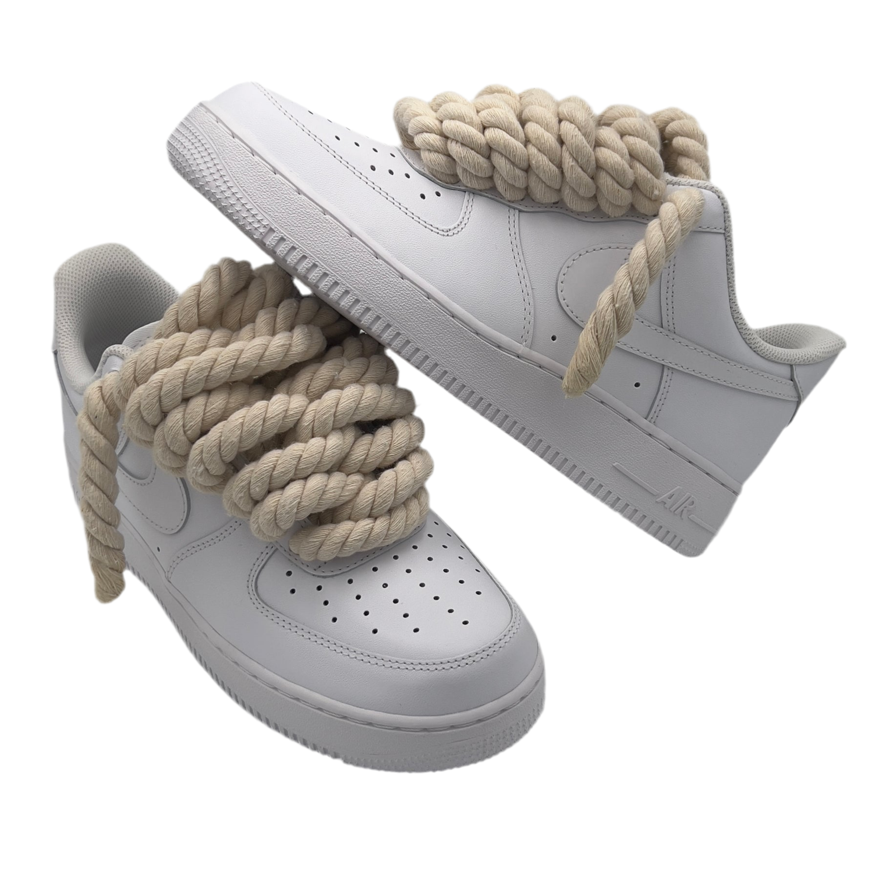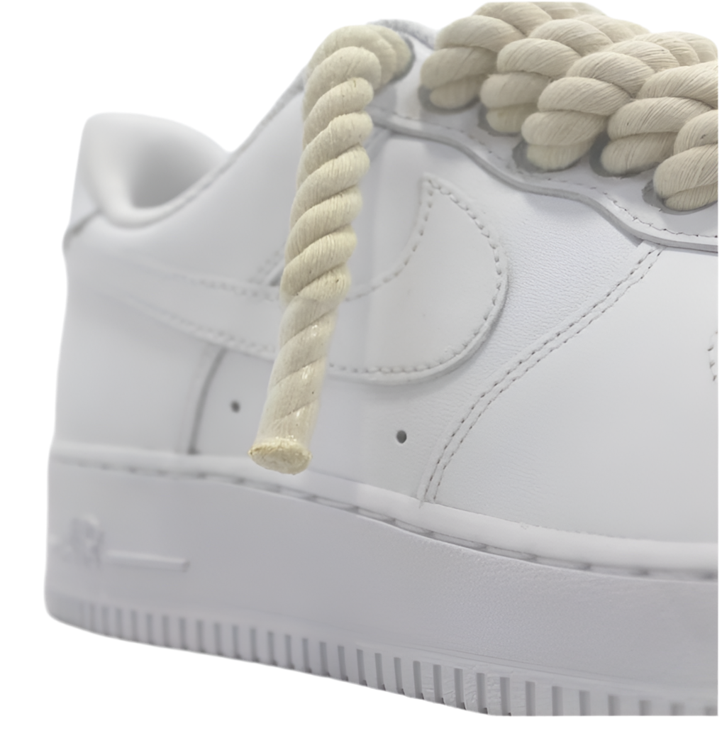 AIR FORCE 1 ROPE LACES CREAM, This custom is a hand made @cleanfreakuk special! The custom is a clean all rounded sneaker that can be worn with numerous outfits! Available to Order in all sizes. (please note all orders are pre-orders) DISPATCH TIME 5 - 7 WORKING DAYS.